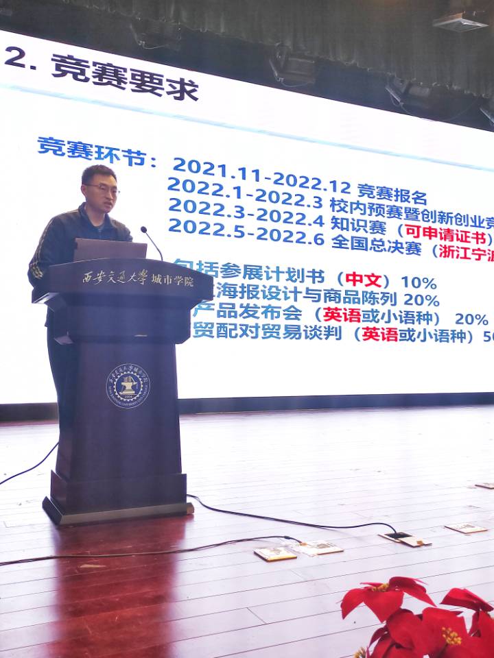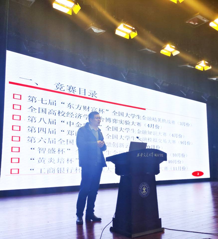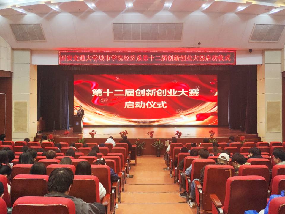 为进一步实现以赛促教、以赛促学、以赛促创的要求,提高大学生创新创业的意识和能力,引导、鼓励广大学生踊跃参加创新创业及各类学科竞赛活动,西安交通大学城市学院经济系于11月18日在教二报告厅开展了经济系第十二届创新创业大赛启动仪式,莅临本次会议的有经济系副主任白丹、主任助理廉宇婷、国贸专业负责人王世杰、财政专业负责人张娜、金融专业负责人陆朝阳、班主任吴荟敏,团工委书记蒋美一帆及学工办全体老师。本次大会由刘沁文同学主持。