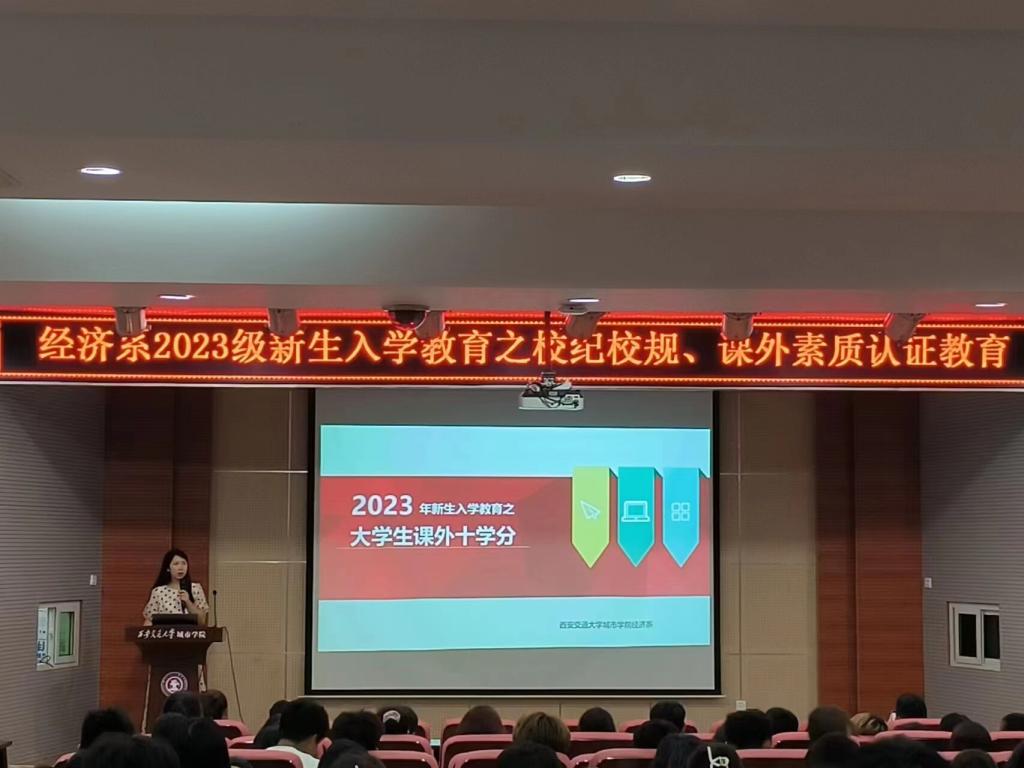为进一步做好经济系2023级新生的教育与管理,切实增强学生的规矩意识,为新学期创造一个良好的开端,西安交通大学城市学院经济系于9月6日在F100召开2023级新生入学教育之校纪校规、课外素质认证教育。本次会议由经济系学工办杨静怡、学工办张进主讲,经济系全体新生参加,由张兢文主持。