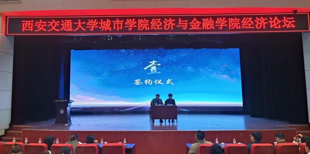 活动伊始,华鑫证券南二环营业部财富总监刘智慧与经济与金融学院副院长杨健全举行签约仪式,双方全面加强交流与合作,互学互鉴、资源共享,建立长期合作关系。