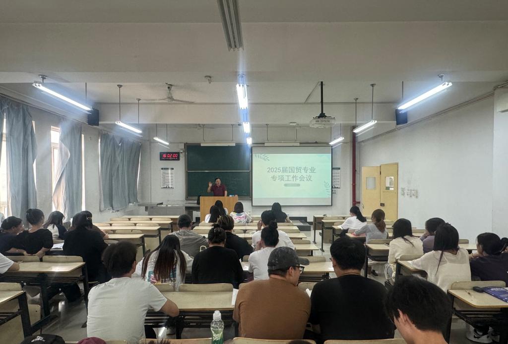 为了推进2025届国贸专业学生考研和就业工作,帮助同学们解决职业规划和学业发展方面的困惑。经济与金融学院于9月25日下午在D409召开2025届国贸专业学生专项工作会议。经济与金融学院副院长杨健全(国贸2101班班主任)、21级辅导员杨静怡参与此次会议。