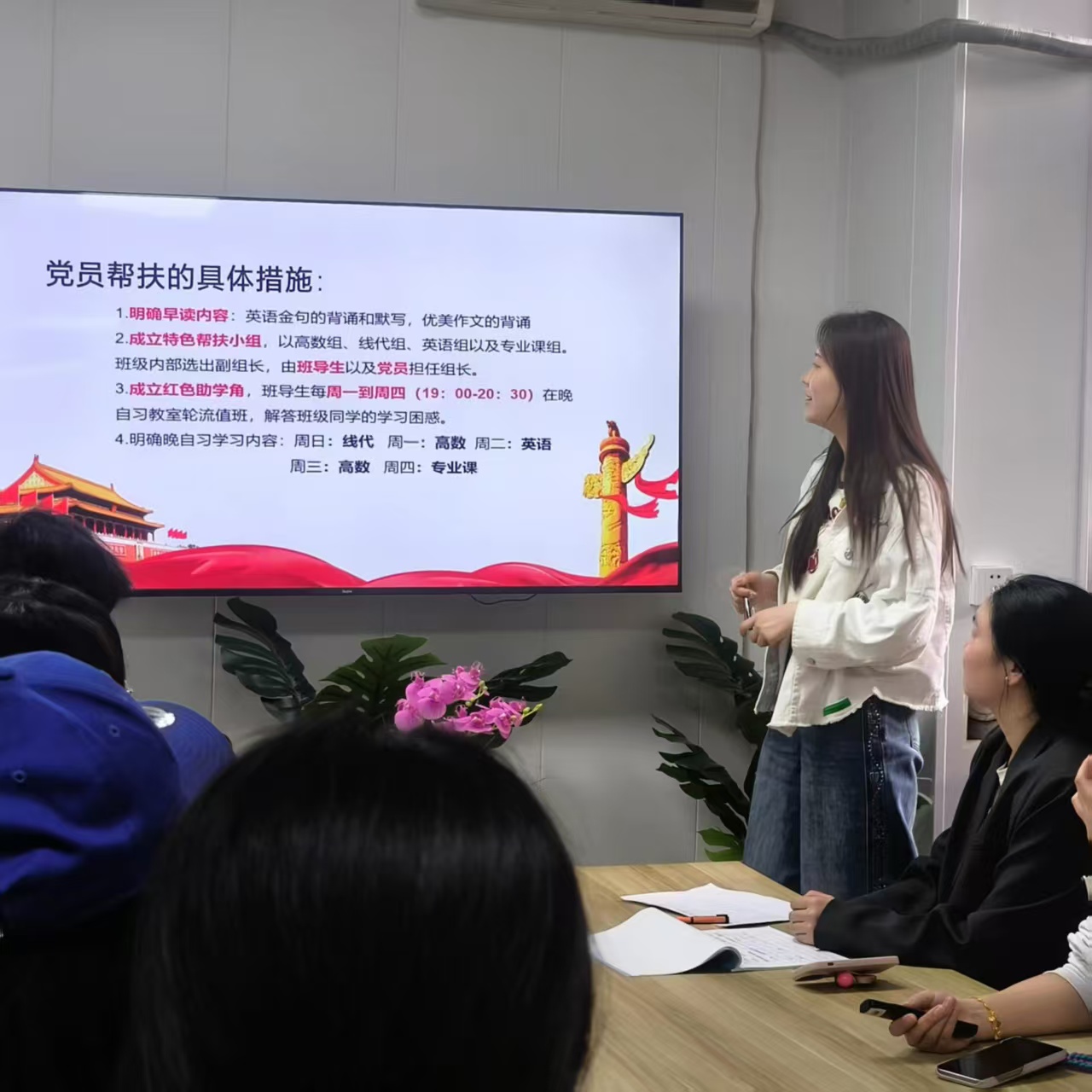 4月10日,史青在五号楼一站式学生社区给各班导生召开日常工作会议,主要就各班学生的学习成绩、学风等方面进行沟通,并安排期中考试期间帮扶工作。目前,学院给每班配备两名优秀高年级班导生,与大一学生结成“2+1”帮扶小组(每名班导生负责至少2名新生),通过定期进班交流、线上答疑、习题辅导等形式提供学业支持。帮扶期间,班导生累计开展集中答疑会12余场,解决具体问题150余个,并分享笔记整理、考前复习等实用技巧。有大一学生表示:“班导生的经验让我们少走了很多弯路。”