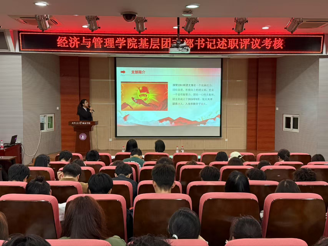 3月24日,经济与管理学院在F100报告厅举办了基层团支部书记述职评议考核会议,经济与管理学院院长助理廉宇婷、团工委书记蒋美一帆出席会议,惠雨辰主持会议。