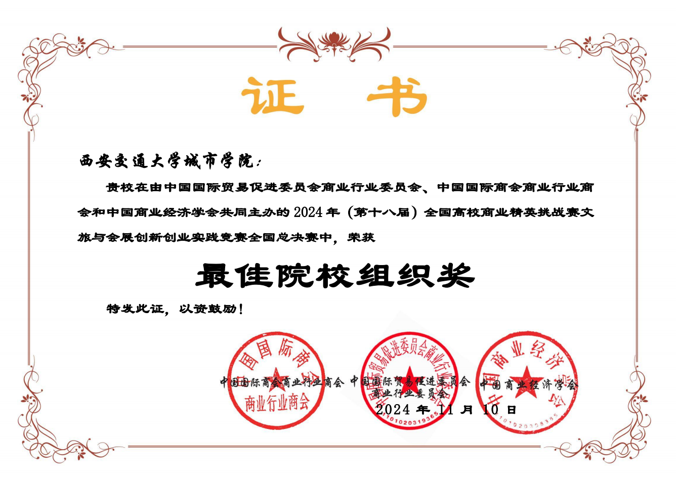 全国高校商业精英挑战赛是由中国国际贸易促进委员会商业行业委员会牵头,会同有关专业协会(学会)联合主办,设置会展创新创业实践、物流与供应链等多个赛道,累计参赛院校数量2000余所。西安交通大学城市学院在此次大赛中表现出色,在不同赛道共获得11个奖项。