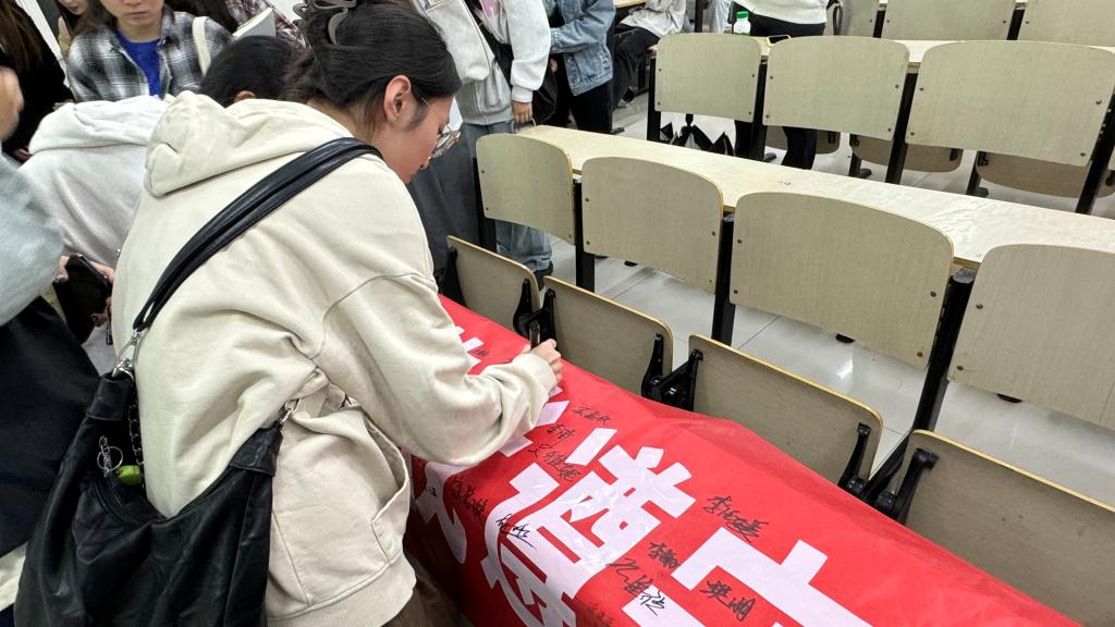 在学生会主席刘宇航同学的带领下,大家进行了“文明校园,你我同行”宣誓和签名活动,表达了大家愿意为创建文明校园贡献力量以及争做文明新青年的决心。