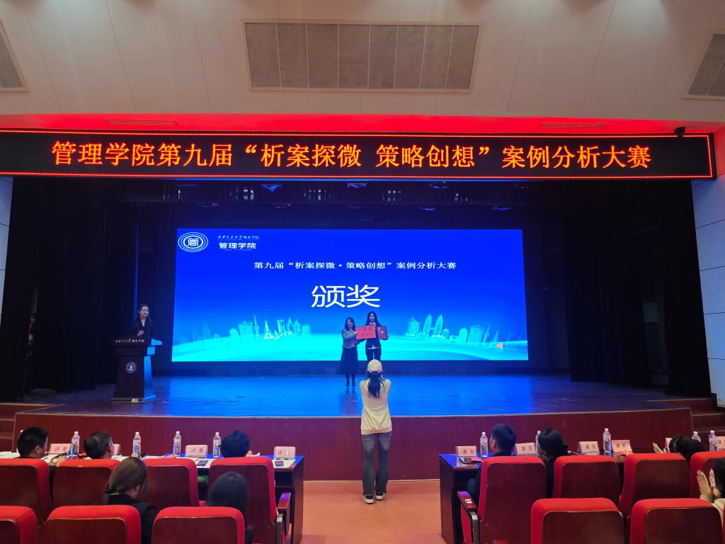 为锻炼学生们的思辨能力和团队协作,促进理论与实践的深度融合,3月26日晚,管理学院在教二报告厅举办第九届“析案探微·策略创想”案例分析大赛决赛。陕西中鸿财税研究院有限公司总经理赵江波、陕西尚达飞物联科技有限公司董事长姜宇飞,学校财务处处长马江涛、教务处常务副处长袁晓蕾、管理学院常务副院长郭关科、院长助理王旭、院长助理刘健、团工委书记柯智航及管理学院全体教师们参加了本次比赛。