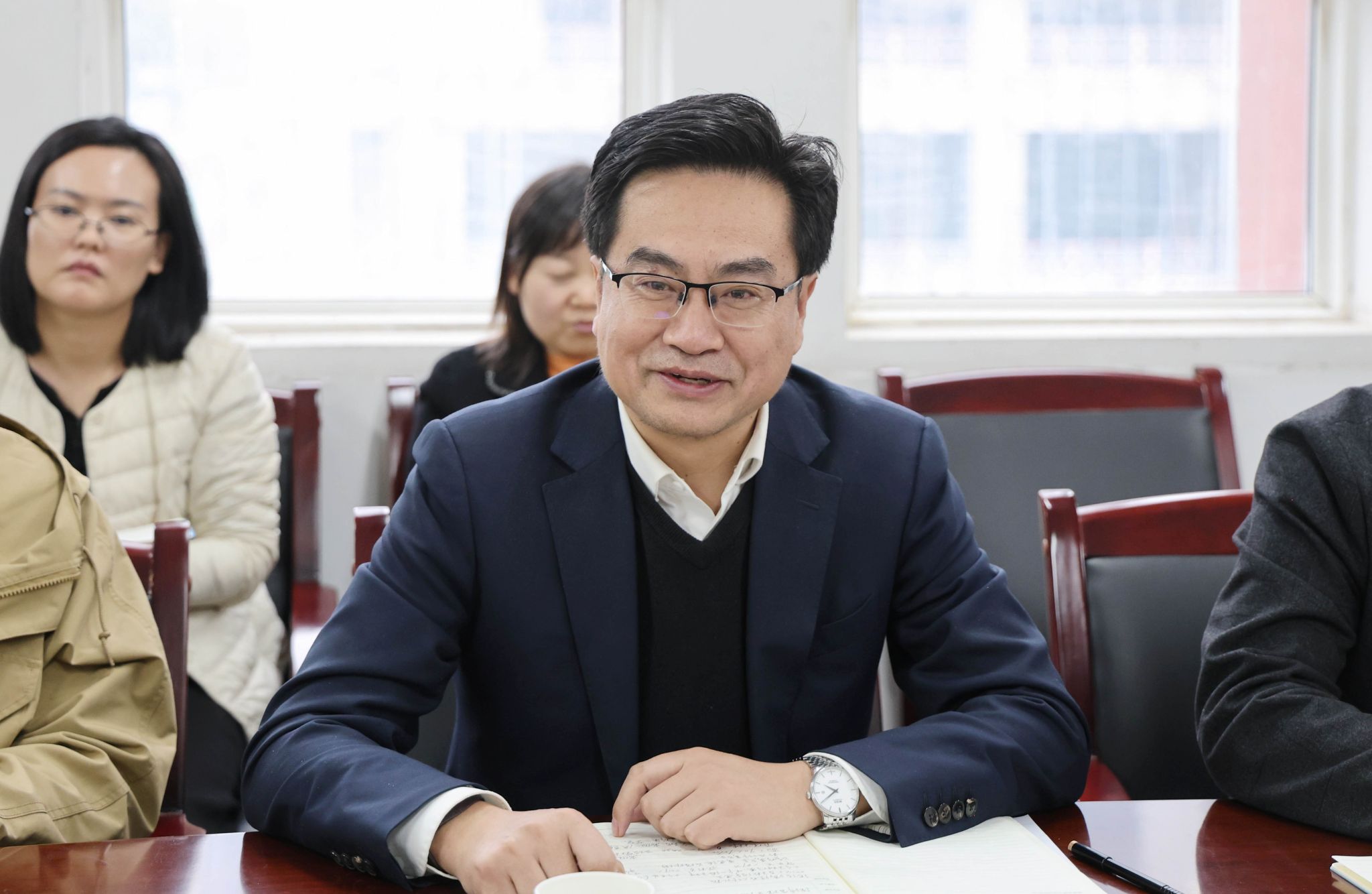 10月22日,王永泉校长带队调研二级学院,首站来到经济与管理学院,看望学院教师,并组织召开工作座谈会。校长助理、行政人事部部长姬志国,校长助理、财务处处长马江涛参加调研。
