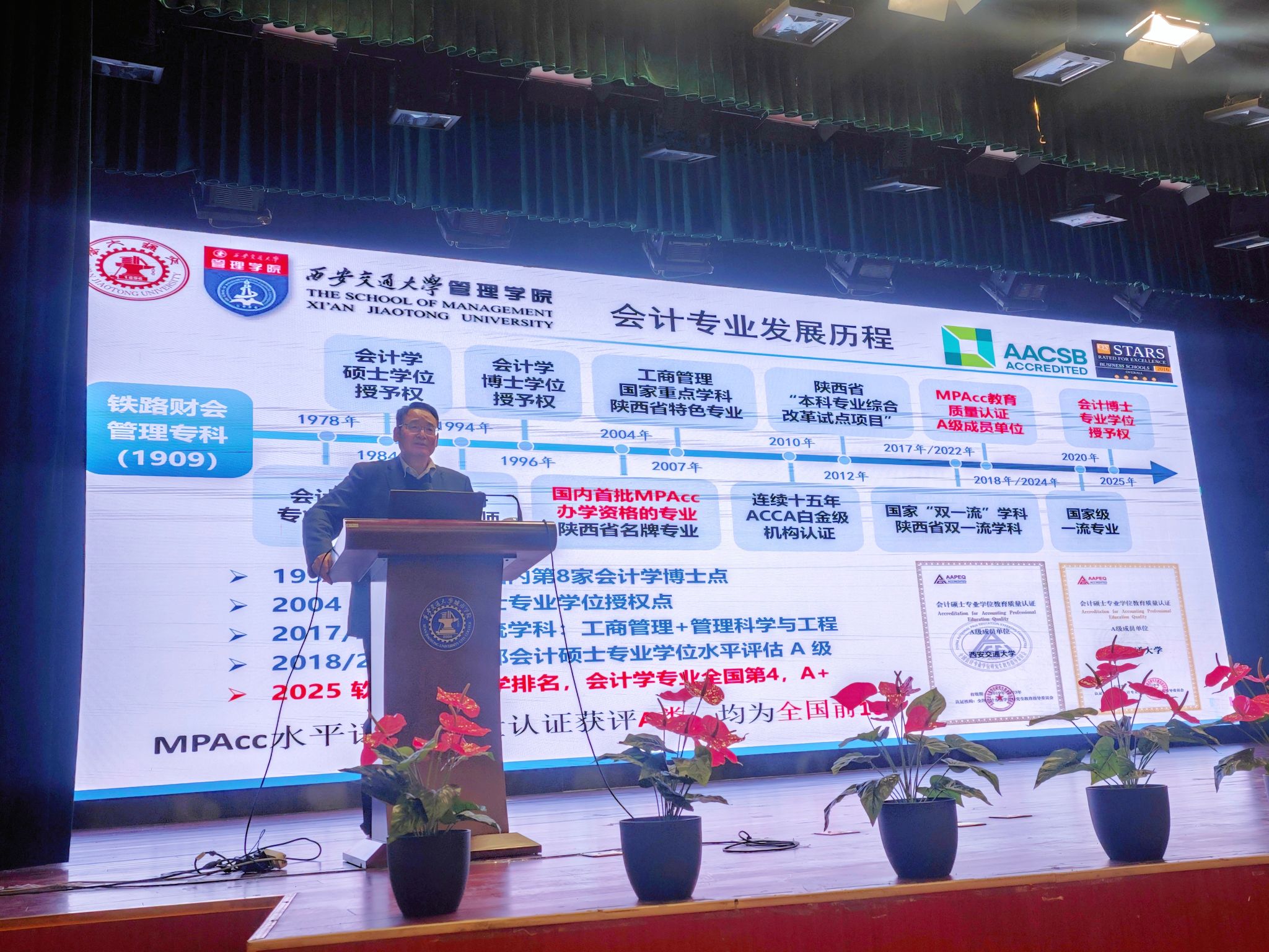 宣讲会上,张俊瑞以项目“硬实力”为切入点,系统介绍了西安交大管理学院会计学科的发展历程、核心优势、历史底蕴,展示出该学科的雄厚底蕴。张俊瑞教授结合2025年最新政策,精准解读关键信息:报考流程与时间节点、复试分数线及录取规则。在宣讲过程中,张俊瑞教授还分享了项目学子的亮眼成果:2024年获第十届全国MPAcc学生案例大赛特等奖,2025年获第十一届该赛事三等奖,连续多年在“尖烽时刻”全国商业模拟大赛中斩获一、二、三等奖;累计培养49名ACCA全球统考全球第一或大陆第一的学子,校友中涌现出数十名全国会计领军人才、省级会计领军人才,充分彰显项目育人成效。