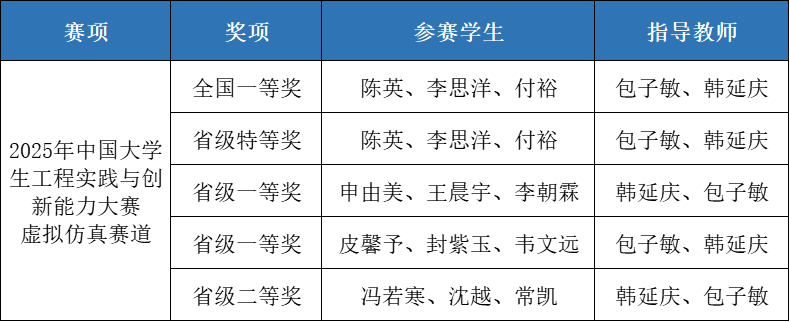 中国大学生工程实践与创新能力大赛是我国高等工程教育界规模大、影响力广的工科A类赛事之一,由教育部工程训练教学指导委员会举办,每两年举办一届。2025年中国大学生工程实践与创新能力大赛共有来自全国771所高校的12.6万名大学生参加比赛。大赛设“新能源车”“智能+”和“虚拟仿真”三个赛道的九个赛项,经过校赛、省赛、全国决赛几个环节,全方位考察参赛学生的创新思维与工程实践技能。省赛中,经管学院获得省级特等奖1项、一等奖2项、二等奖1项。