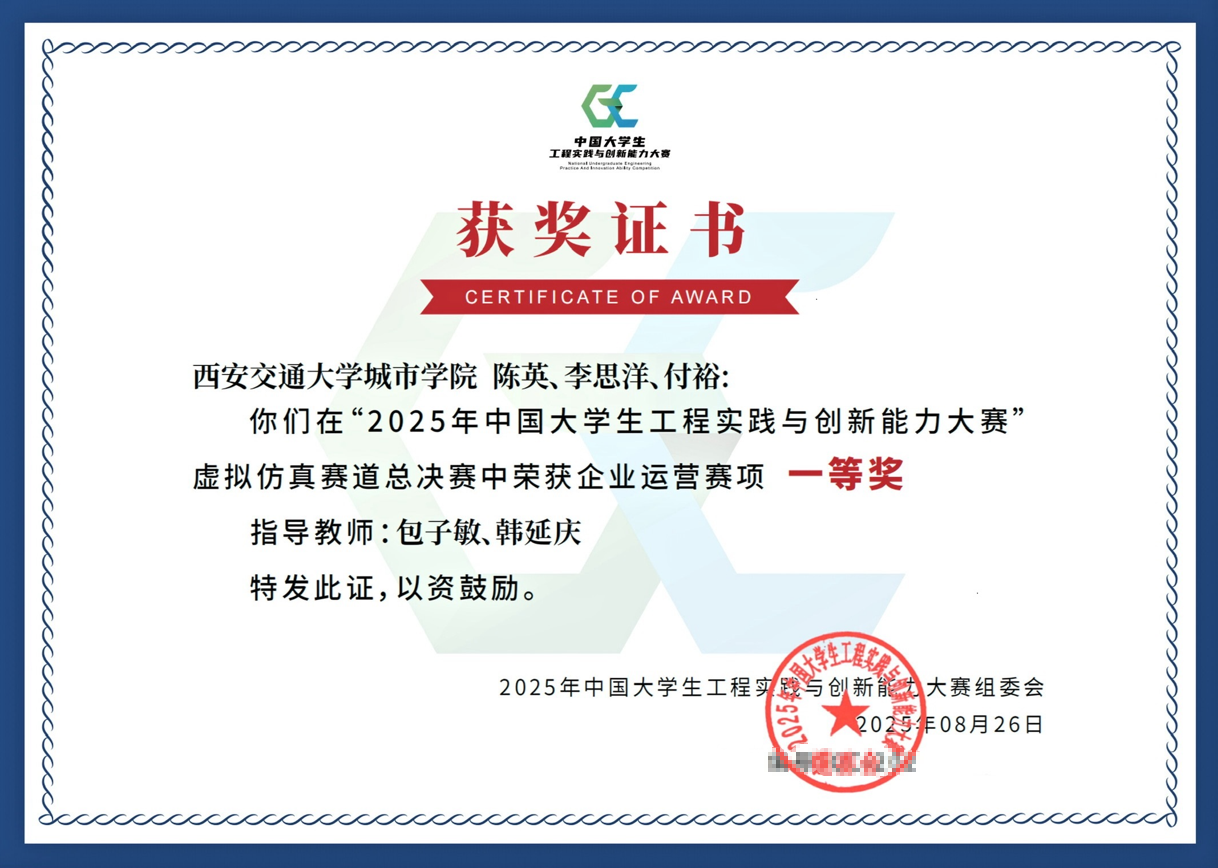 西安交通大学城市学院在中国大学生工程实践与创新能力大赛中获佳绩