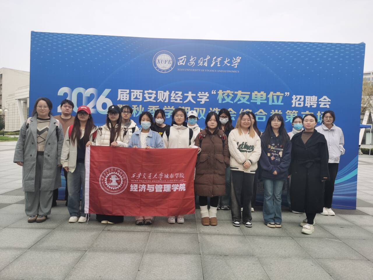 11月12日,经济与管理学院在招就处的统筹下精心组织20余名2026届毕业生,由刘连宏带队前往西安财经大学长安校区参加“2026届西安财经大学校友单位招聘会”,为我院毕业生与用人单位搭建了高效、精准的双向选择平台。