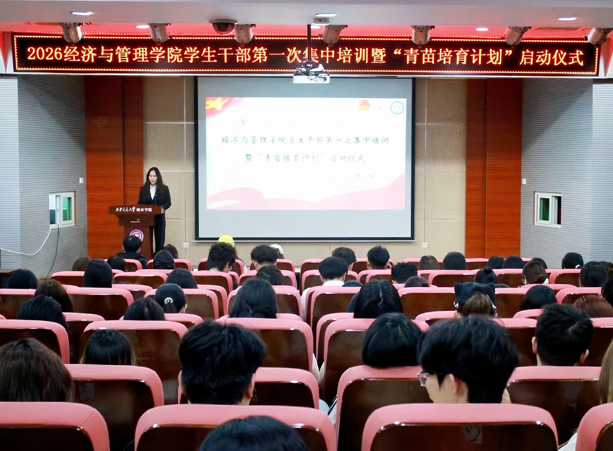 4月28日晚,经济与管理学院举办学生干部第一次集中培训暨“青苗培育计划”系列学生干部培训启动仪式。学院学生第一党支部书记、院长助理刘健老师,团工委书记柯智航及全体学生干部参加活动。