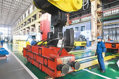 今年以来,哈电集团哈尔滨电机厂有限责任公司加快改革创新,推进生产经营各项工作深入开展,前三季度,该企业完成工业总产值31.15亿元。图为10月30日,在该公司生产车间,工人在进行生产作业。 新华社记者 王 松摄