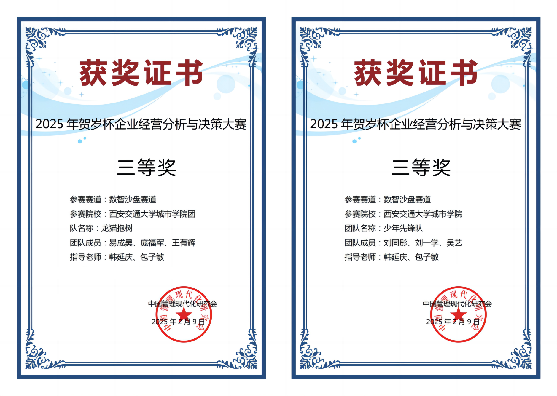 近日,2025年“贺岁杯”企业经营分析与决策大赛落幕。西安交通大学城市学院共有13支队伍在全国总决赛中获得奖项。