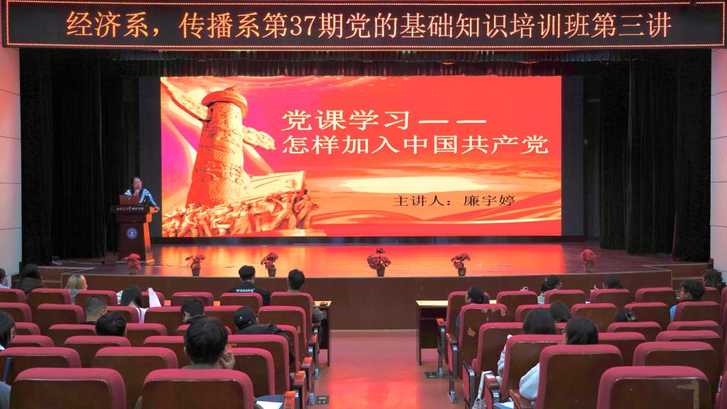 为进一步加强同学们的理想信念、党性修养,引导学生树立正确的世界观、人生观和价值观,激发学生向党组织靠拢的热情。经济系、传播系于9月27日、29日和10月5日在教二报告厅开展了第37期党的基础知识培训班讲座。本次讲座的主讲人为经济系廉宇婷老师、电信系王娇老师、传播系杨耀聪老师。