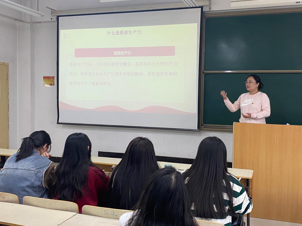 党支部书记廉宇婷进行了题为“学习两会精神、凝聚奋进力量”的微党课,针对两会中提到的“新质生产力”进行详细的解读。随后,学生党员对本次学习进行了交流讨论。