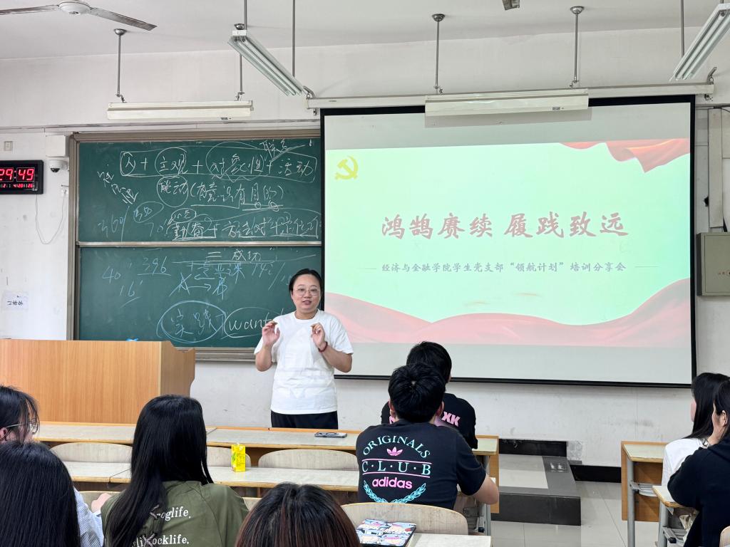 为赓续学生优良学风,发扬党员先锋传帮带精神,激励青年学子锐意进取,努力前行,经济与金融学院学生党支部于6月4日在教室D107开展“领航计划”第三讲,会议由经济与金融学院学生党支部书记廉宇婷主持,经济与金融学院学生党支部组织委员杨静怡和宣传委员张进参加了本次活动。