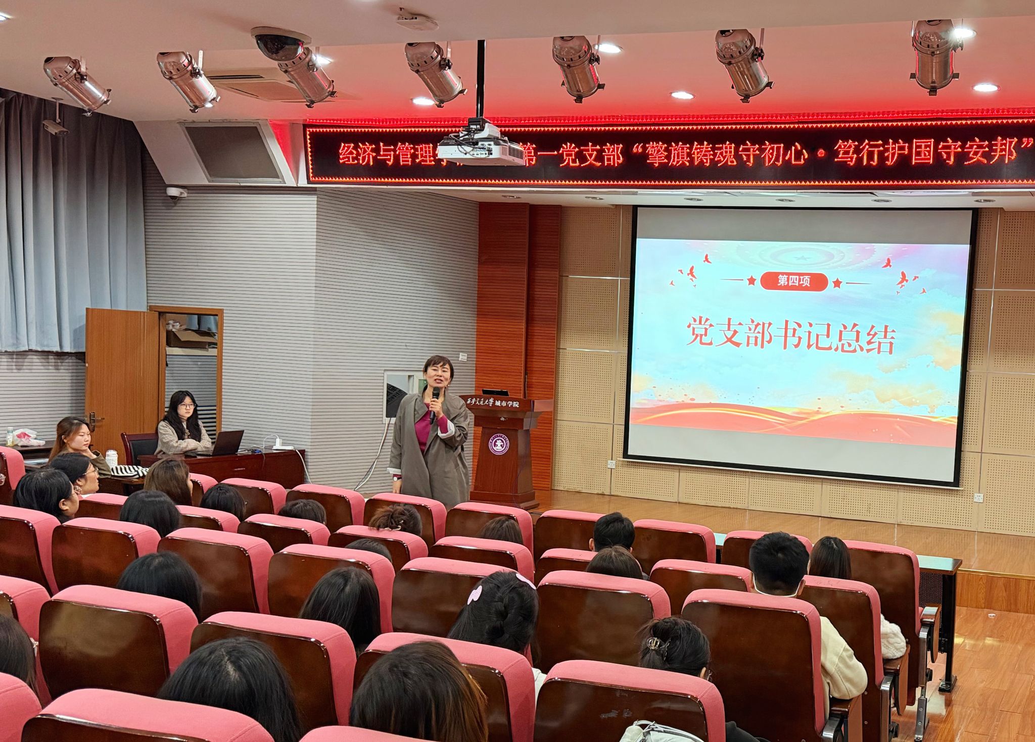 为强化党员理想信念教育,筑牢国家安全意识,传承红色精神血脉,10月22日,经济与管理学院学生第一党支部组织开展“擎旗铸魂守初心・笃行护国守安邦”主题党日活动,党支部书记刘健、组织委员康轲岚、宣传委员张天源及全体党员参加,活动由唐晓琴主持。