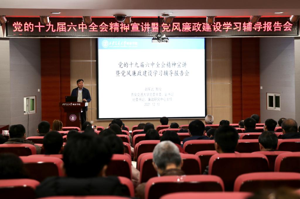西安交大城市学院召开党的十九届六中全会精神宣讲暨党风廉政建设学习辅导报告会